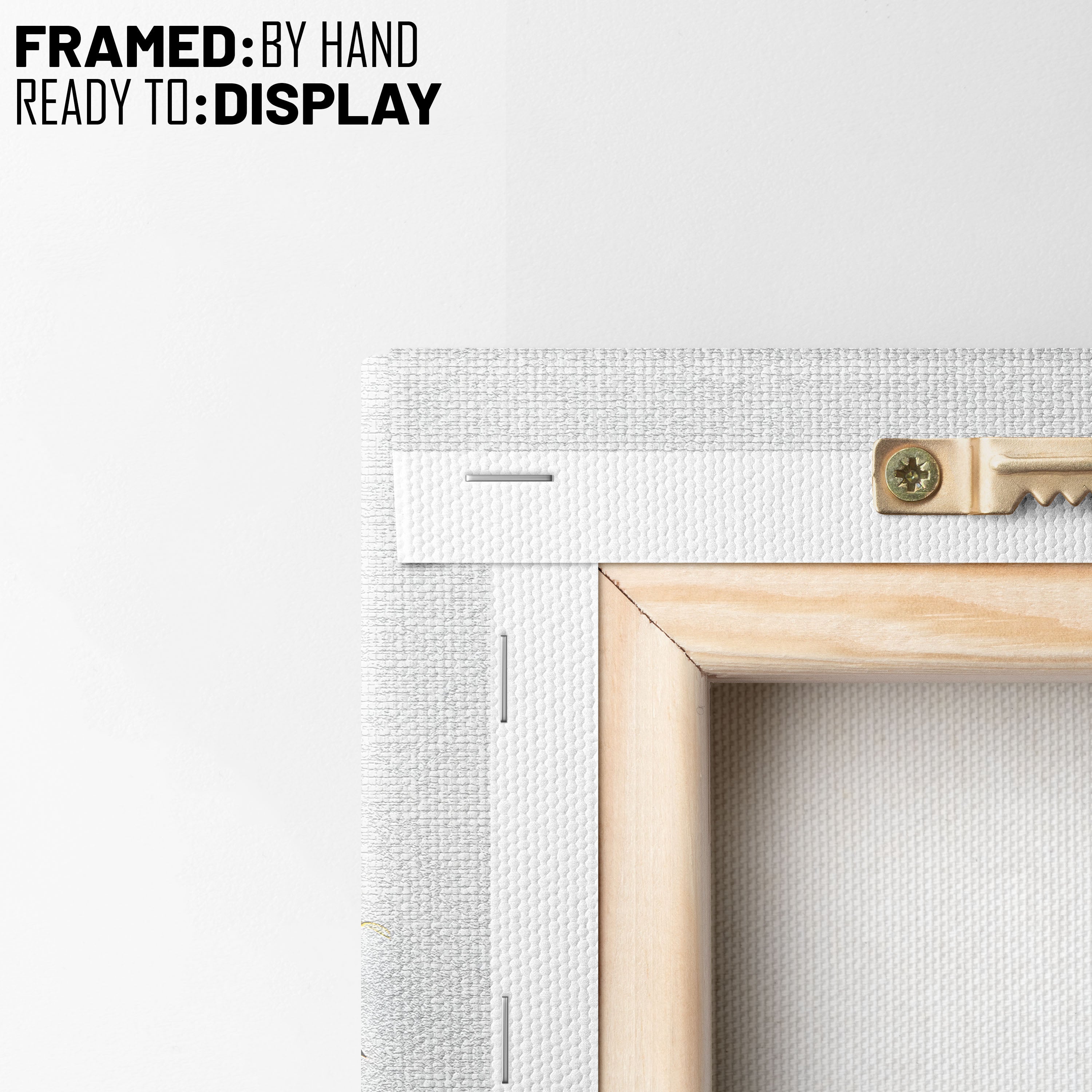 - Hang the canvas by placing the metal hanger on the nail.