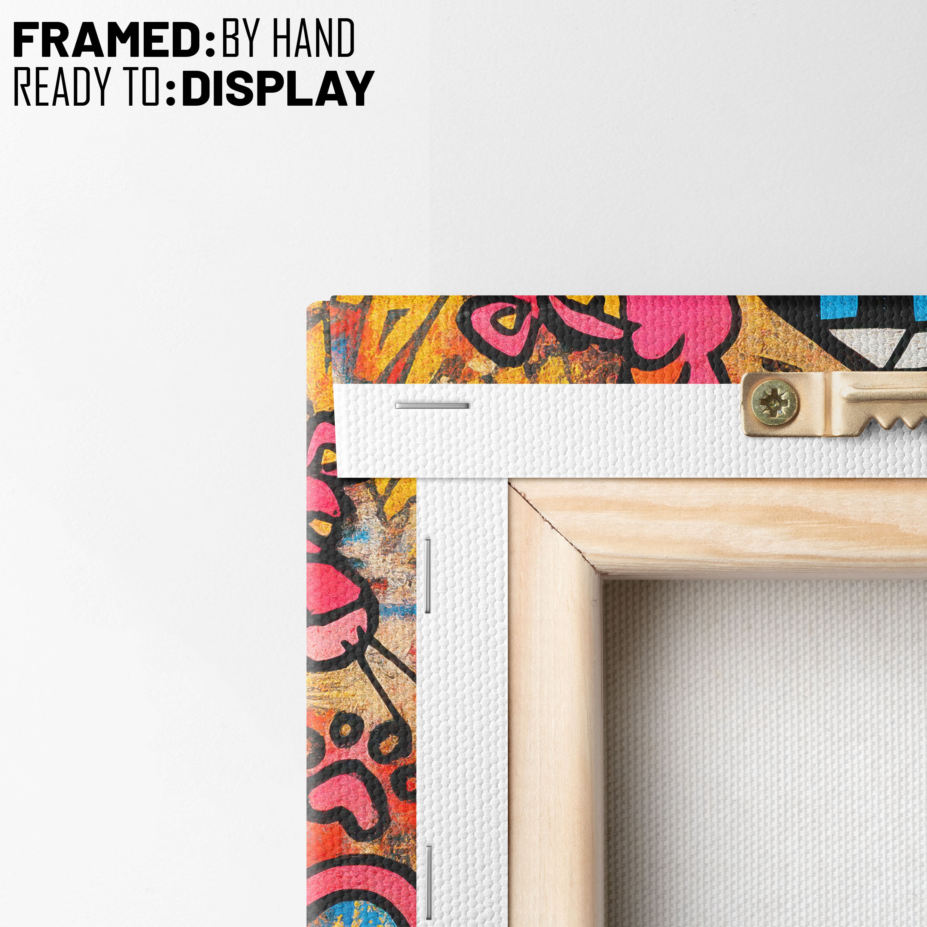 - Hang the canvas by placing the metal hanger on the nail.