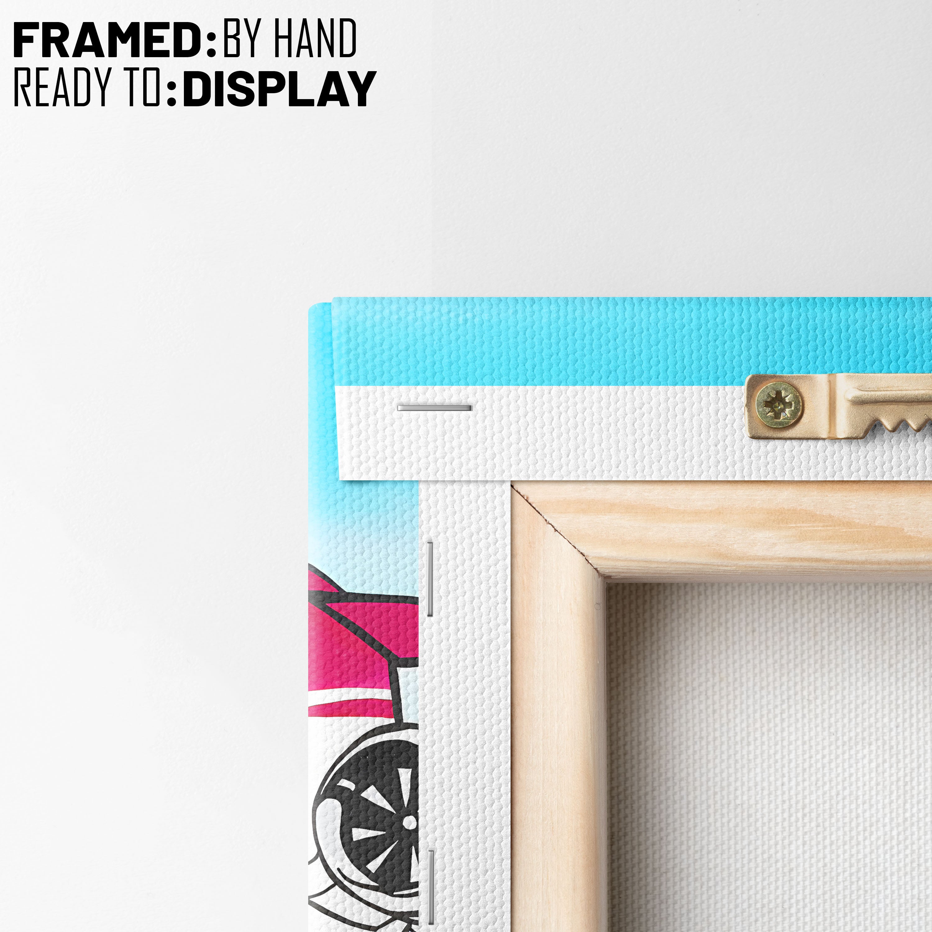 - Hang the canvas by placing the metal hanger on the nail.