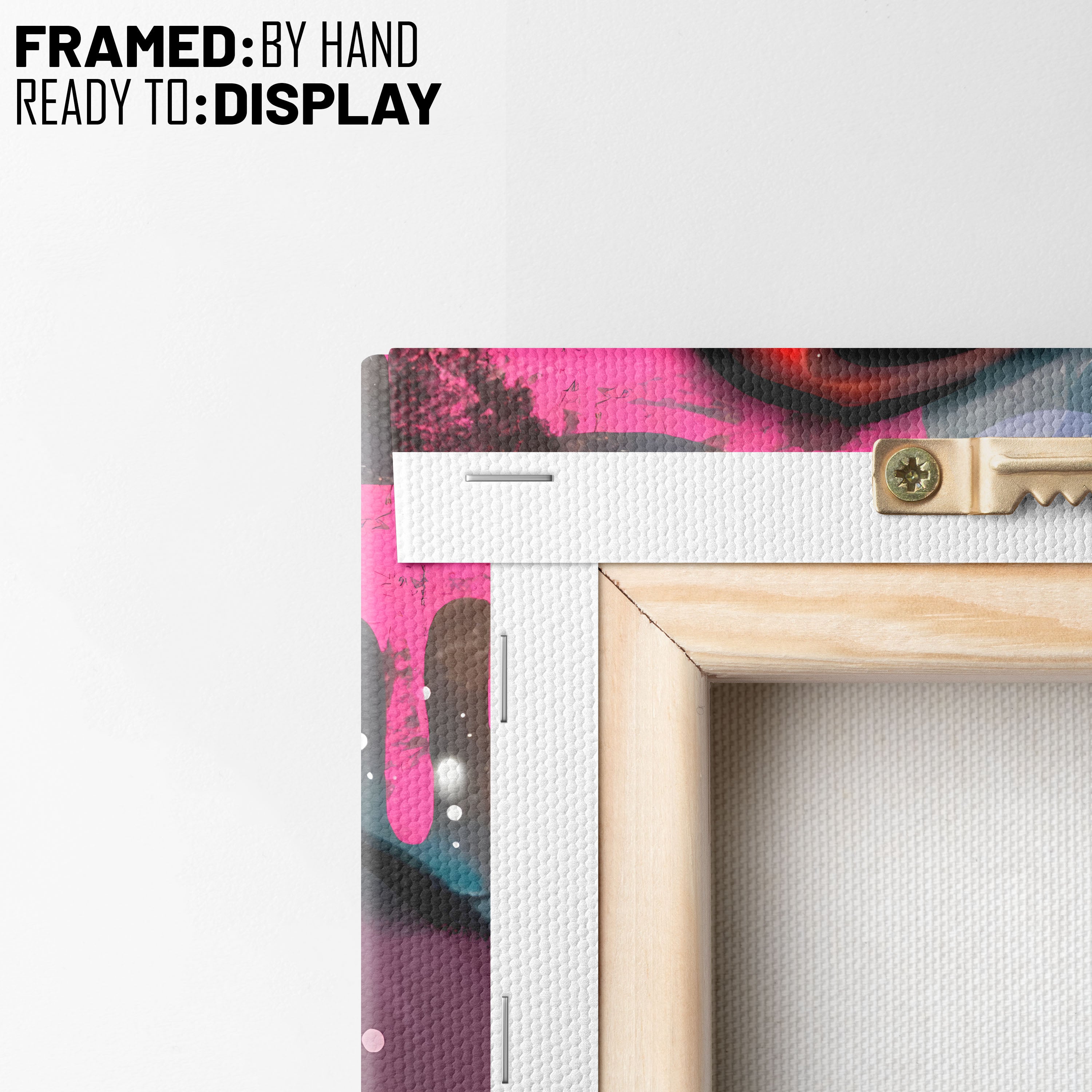 - Hang the canvas by placing the metal hanger on the nail.