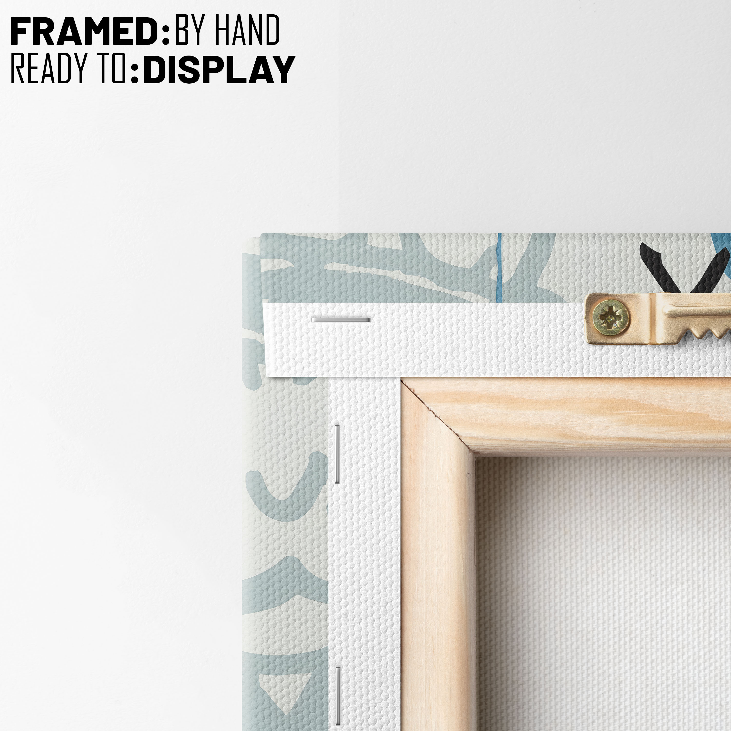 - Hang the canvas by placing the metal hanger on the nail.