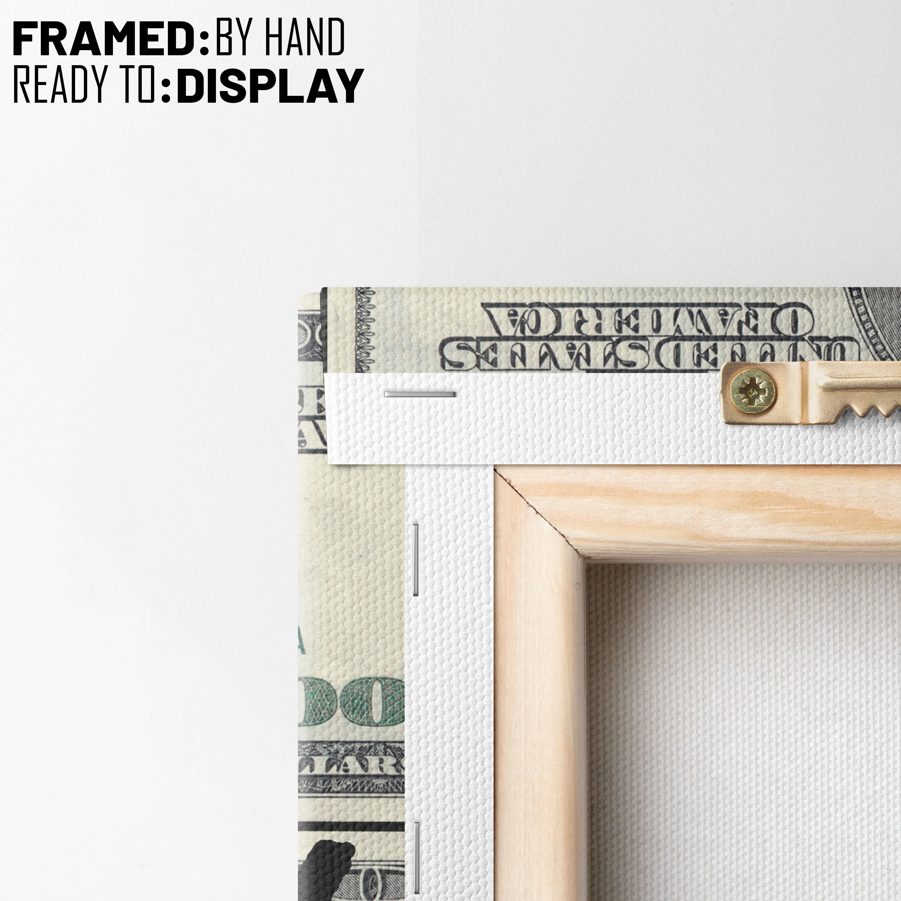 - Hang the canvas by placing the metal hanger on the nail.
