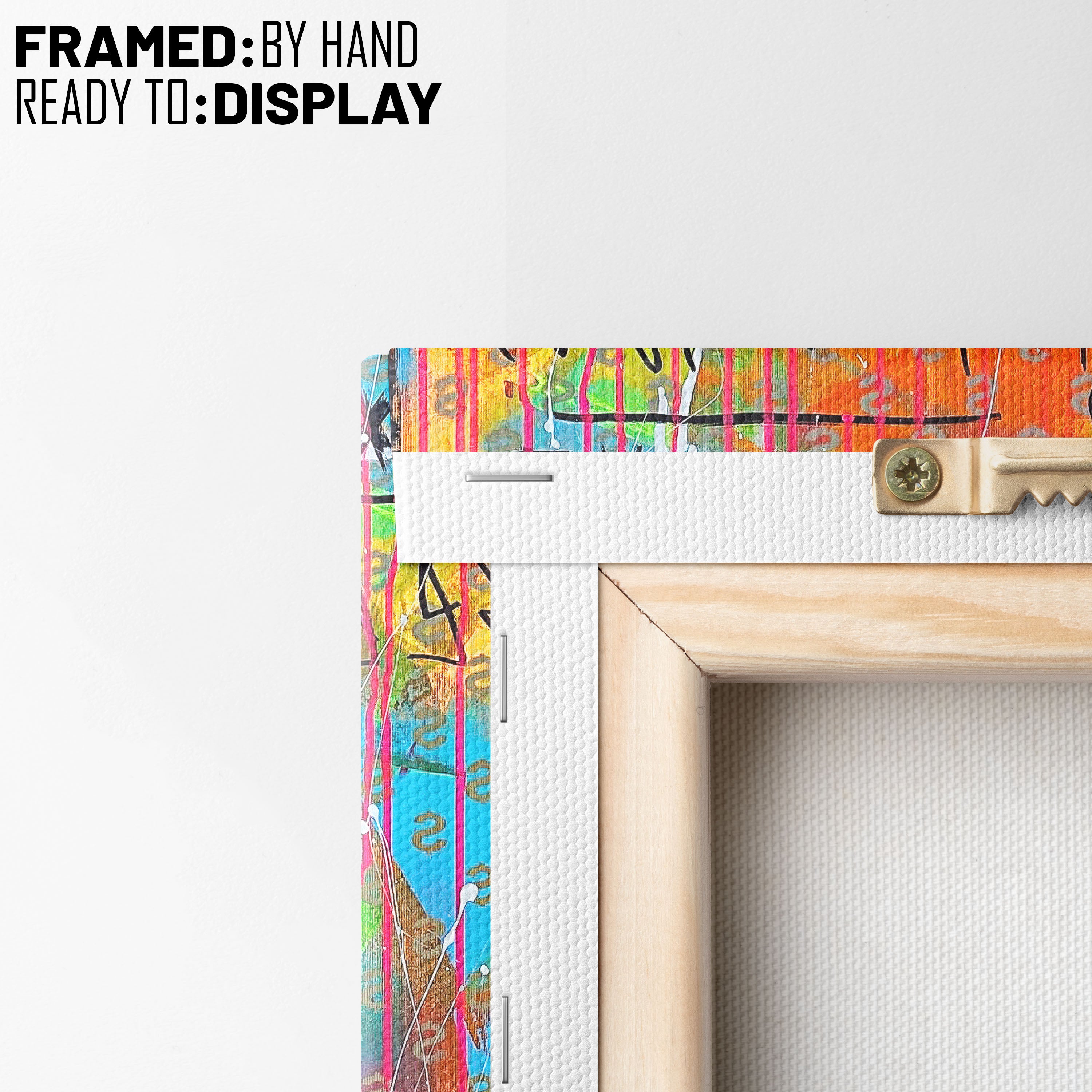 - Hang the canvas by placing the metal hanger on the nail.
